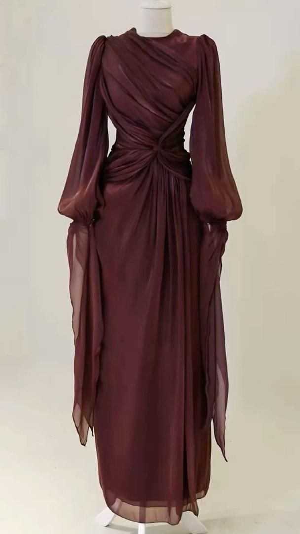 Burgundy Long Sleeve Evening DressA-Line Prom Gown Party dress Gh4317