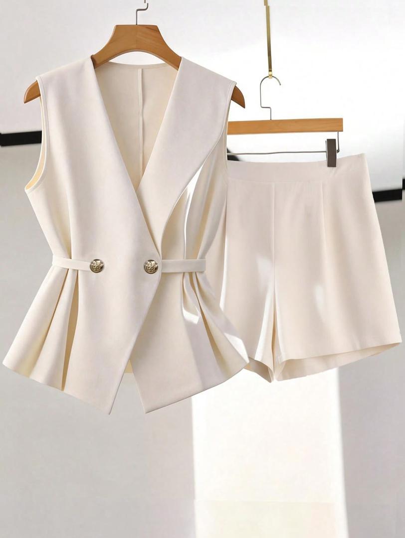 Elegant Peeach Coloured Women vest Blazer set
